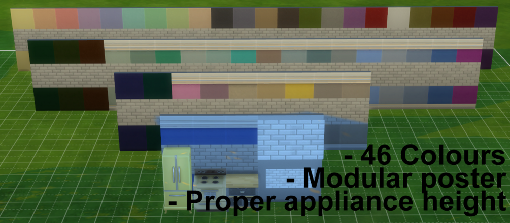 I don't know why the Sims team didn't think that people need/ like kitchen backsplash but we do. Here is a simple recolour CC that contains 46 colour swatches. It also contains a modular tile swatch that's a poster recolour so that you can have more range of kitchen customization.